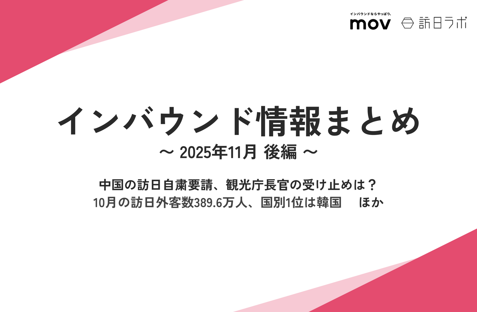 →中国の訪日自粛要請、観光庁長官の受け止めは?/ 10月の訪日外客数389.6万人、国別1位は韓国 ほか:インバウンド情報まとめ 【2025年11月後編】