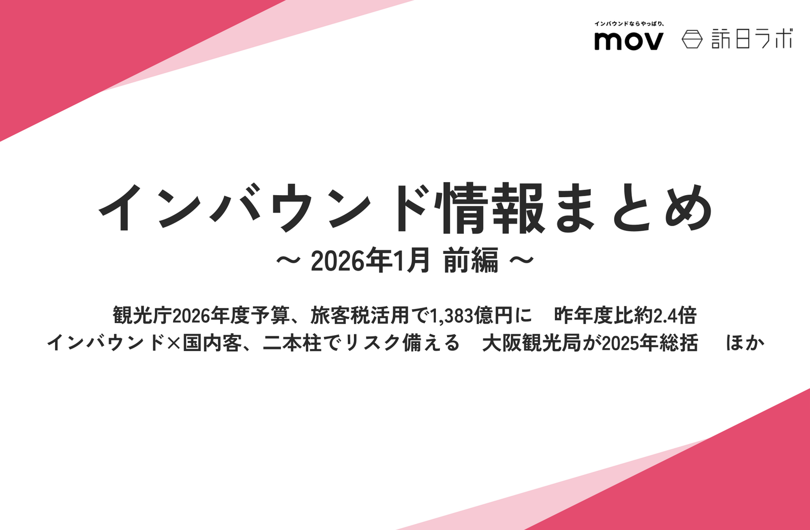 【インバウンド情報まとめ 2026年1月前編】観光庁2026年度予算、昨年度比約2.4倍 / 大阪観光局が2025年総括 ほか