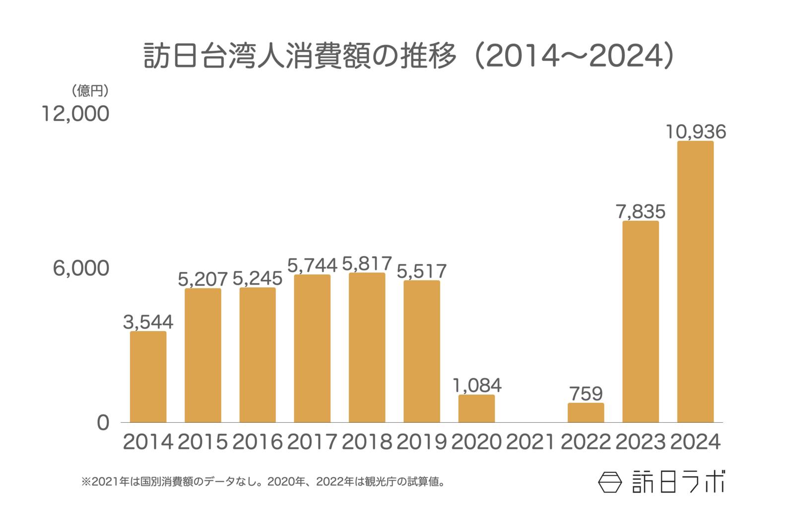 また観光庁のインバウンド消費動向調査によると、訪日台湾人旅行消費額は1兆936億円となり、初めて1兆円を越えました。