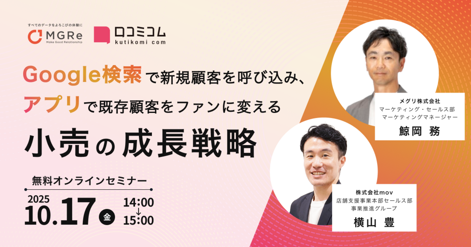 ※本セミナーに関して、株式会社mov プライバシーポリシー・メグリ株式会社 プライバシーポリシーをご確認いただき、同意をいただいた上でお申し込みください。