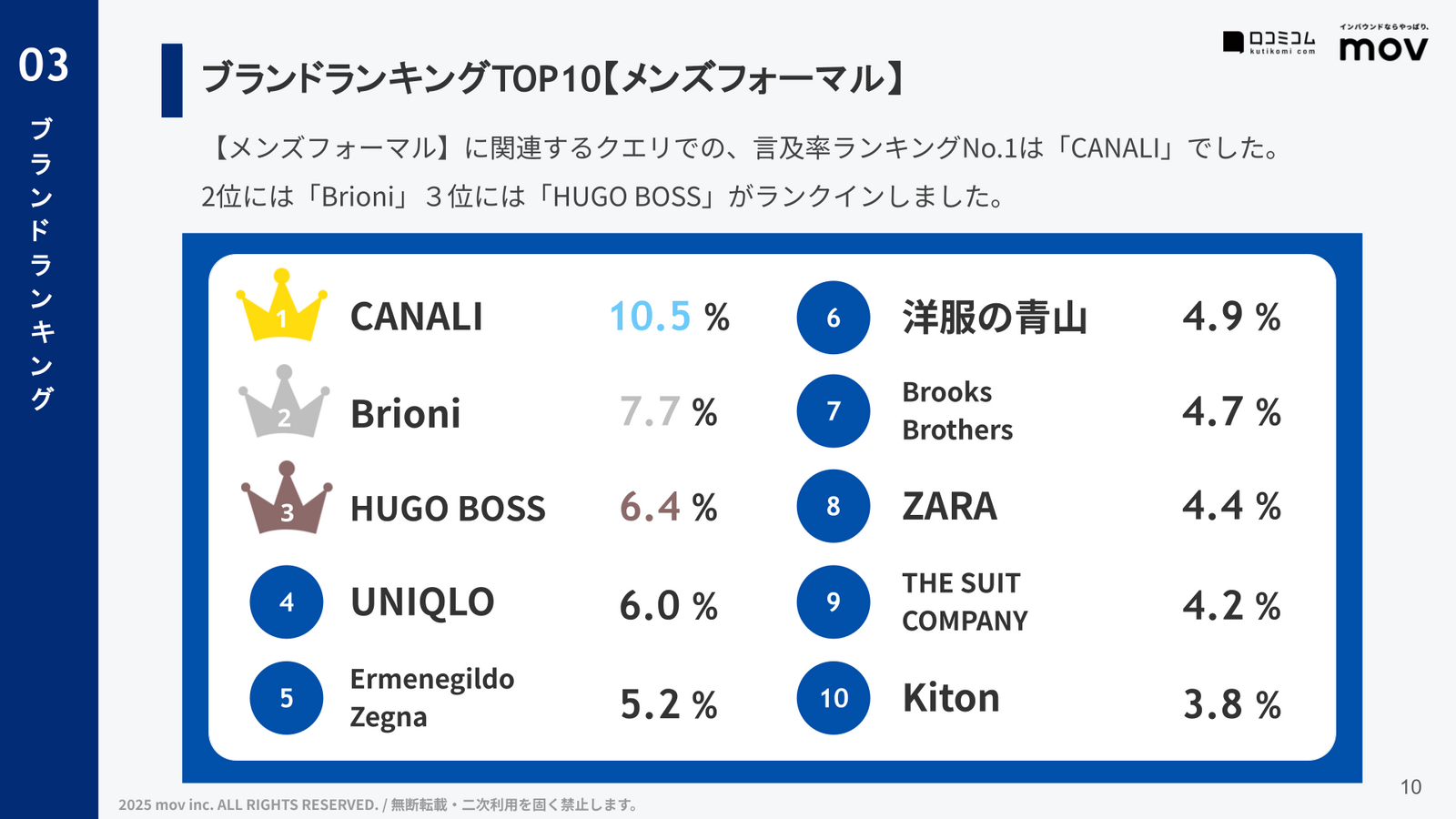 <AIが選んだアパレルブランドランキング[メンズフォーマル] TOP10>