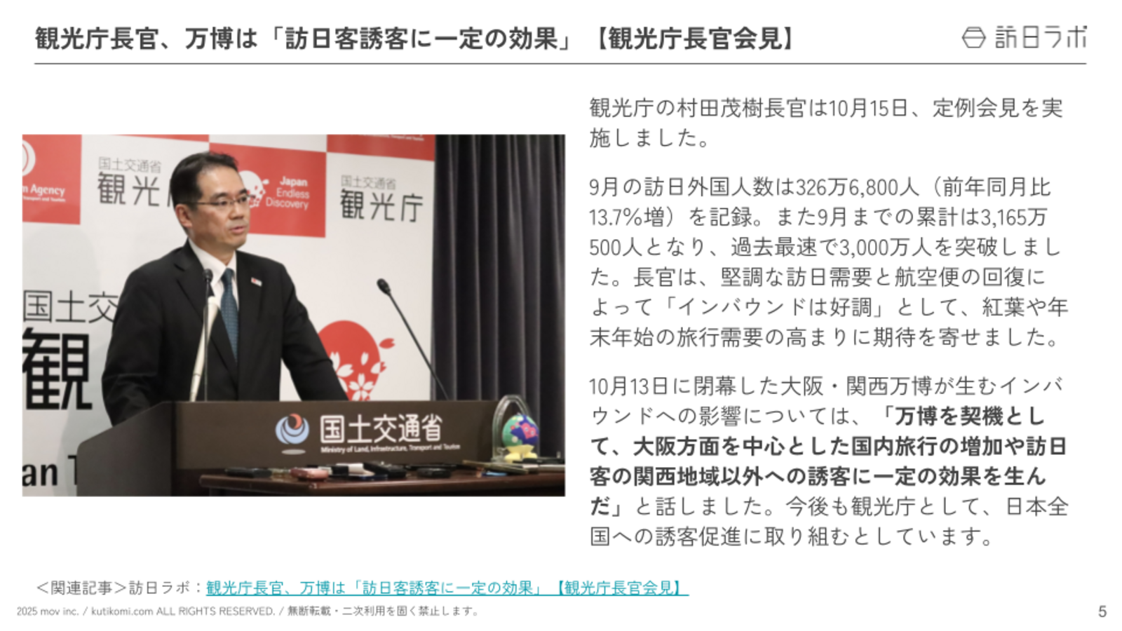 関連記事:観光庁長官、万博は「訪日客誘客に一定の効果」【観光庁長官会見】