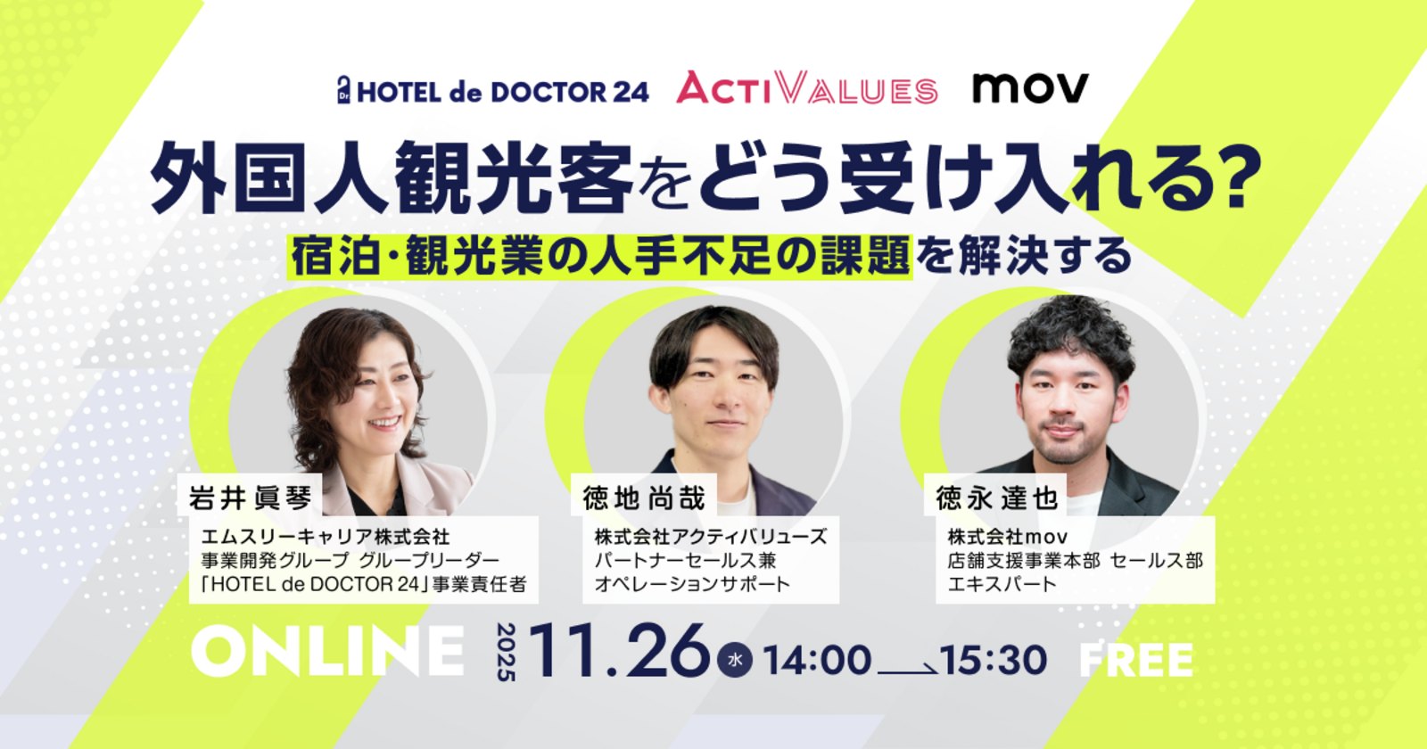※本セミナーに関して、株式会社mov プライバシーポリシー、株式会社アクティバリューズ プライバシーポリシー、エムスリーキャリア株式会社 プライバシーポリシーをご確認いただき、同意をいただいた上でお申し込みください。