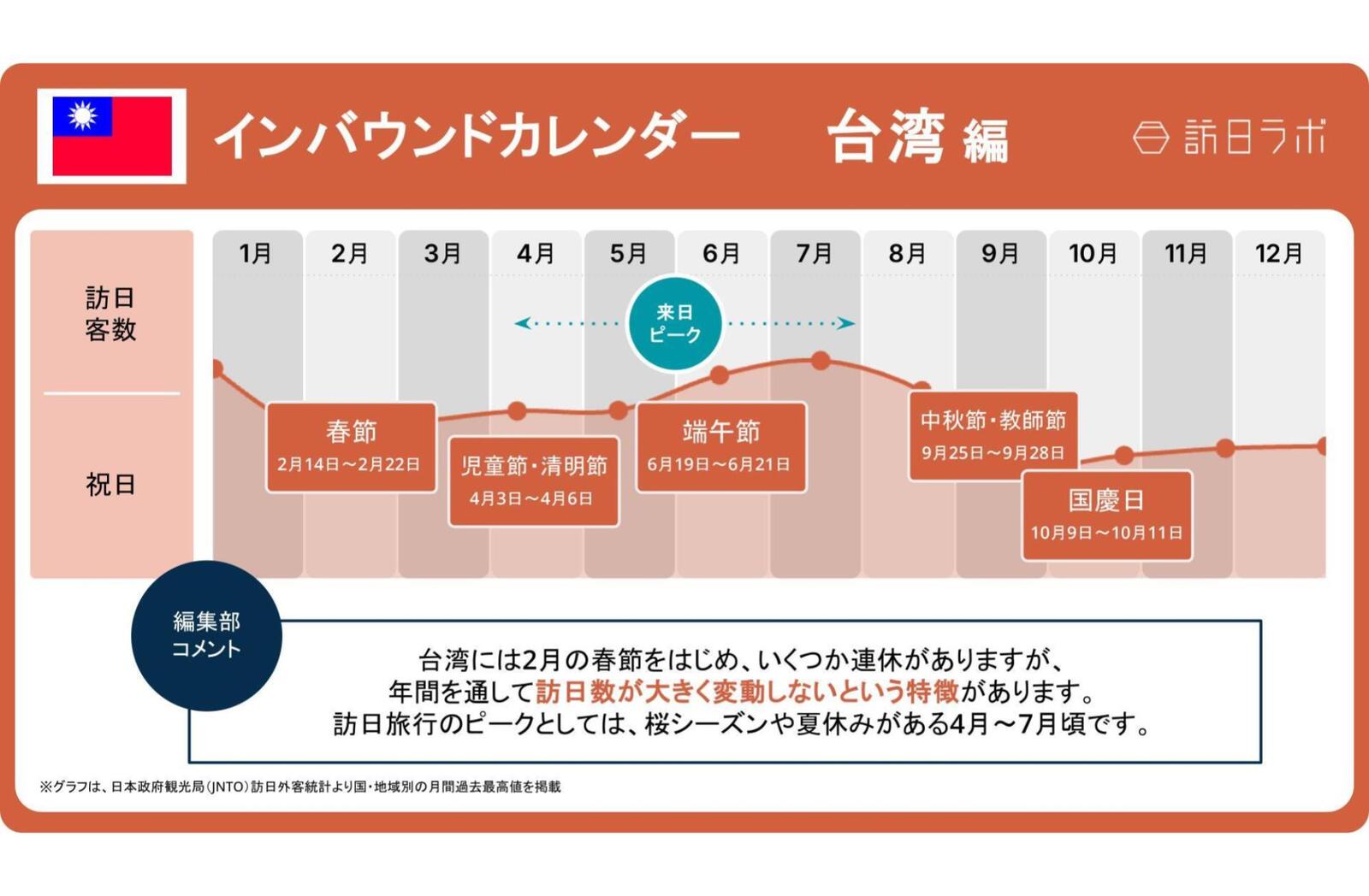 台湾は日本にとって重要なインバウンド市場の一つであり、訪日観光客数・消費額ともに常に上位に位置しています。2026年も、祝日や連休の時期には訪日観光客の増加が期待されます。