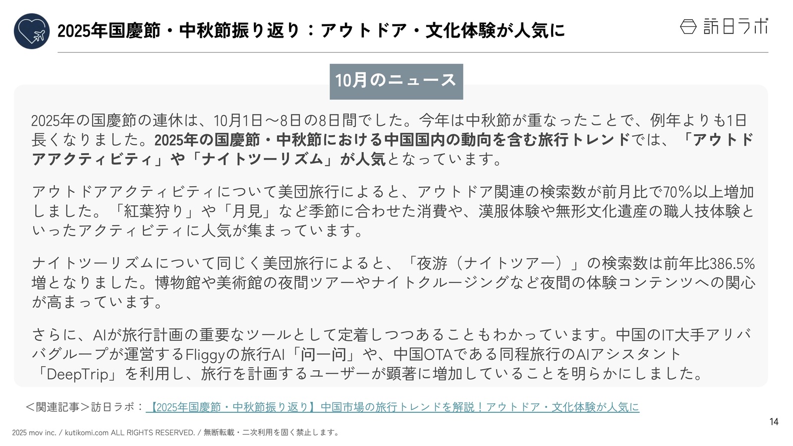 関連記事:【2025年国慶節・中秋節振り返り】中国市場の旅行トレンドを解説!アウトドア・文化体験が人気に