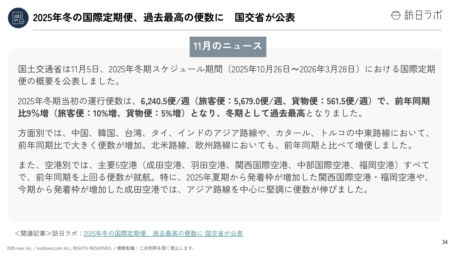 関連記事:2025年冬の国際定期便、過去最高の便数に 国交省が公表