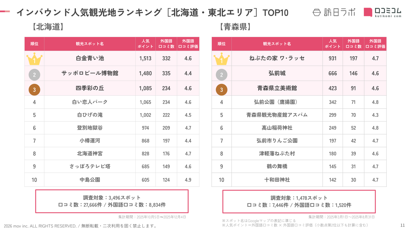- 調査対象:訪日ラボが独自に選出した各都道府県の観光スポット