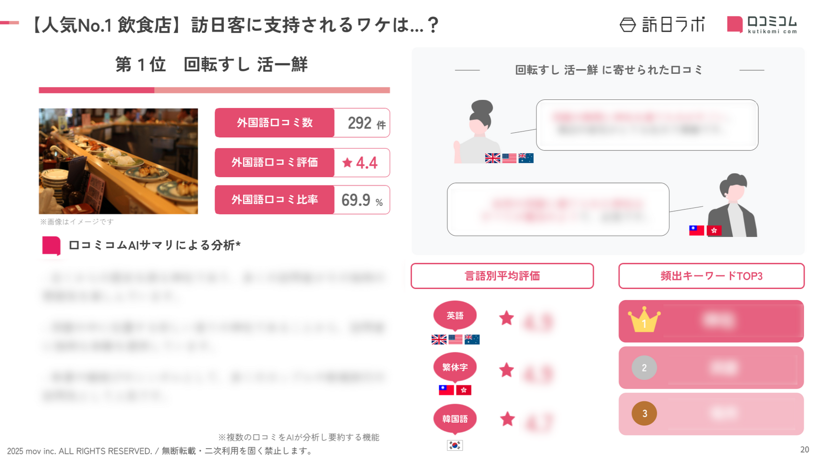 インバウンド人気飲食店ランキング[北海道×寿司編]では、以下の内容が明らかになりました。