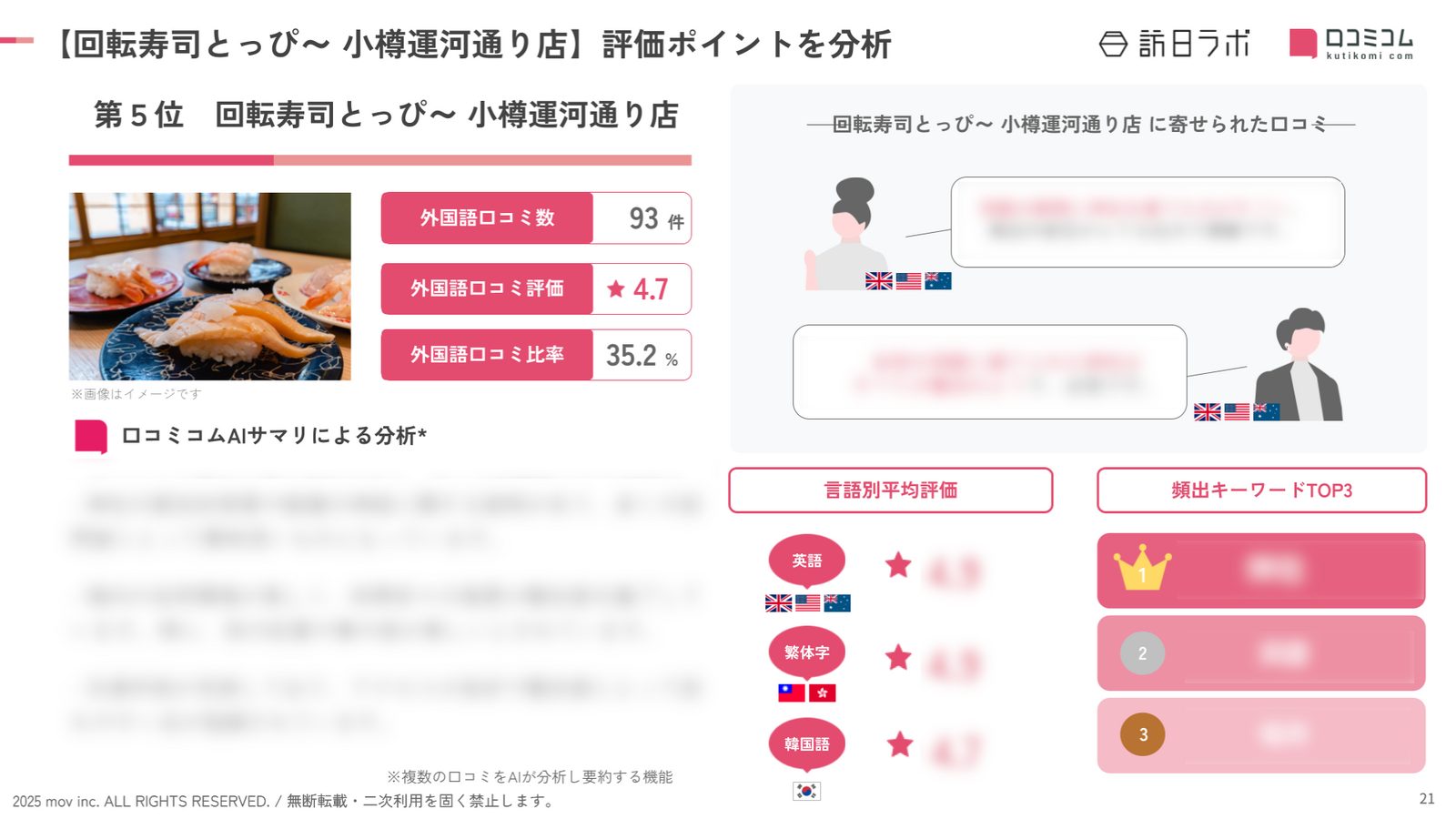 - 口コミ総数:21,061件 / うち 外国語口コミ数:3,446件