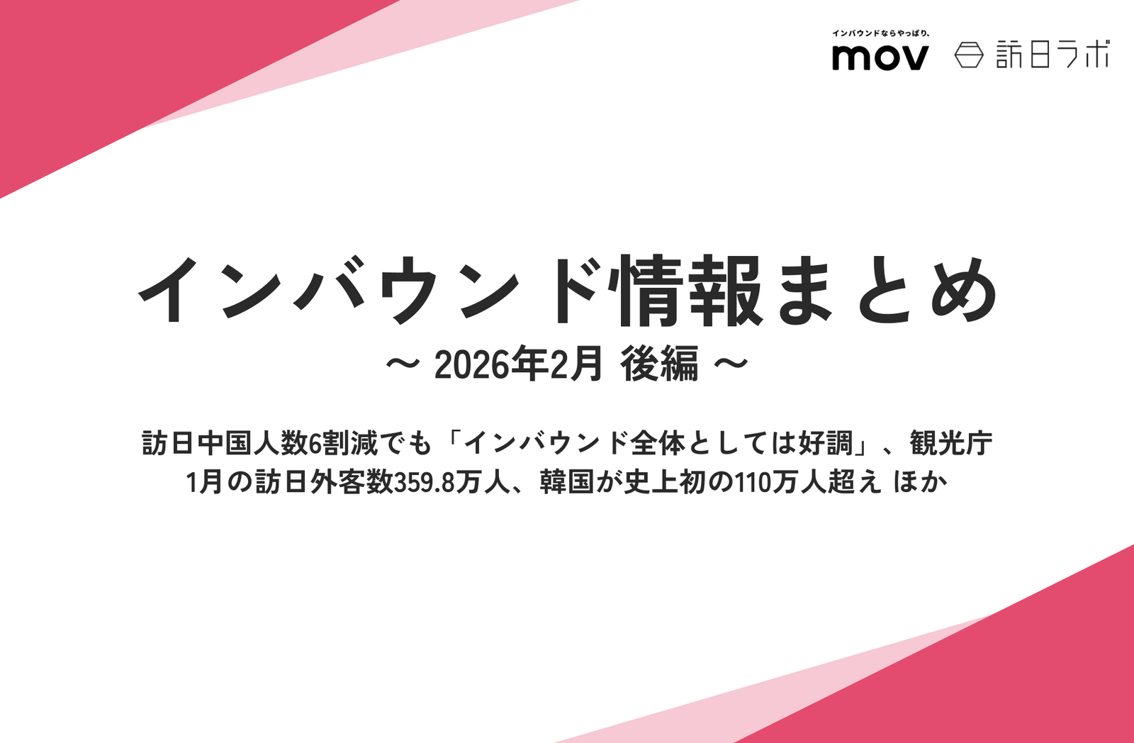 訪日ラボを運営する株式会社movでは、観光業界やインバウンドの動向をまとめたレポート【インバウンド情報まとめ】を毎月発行しています。
