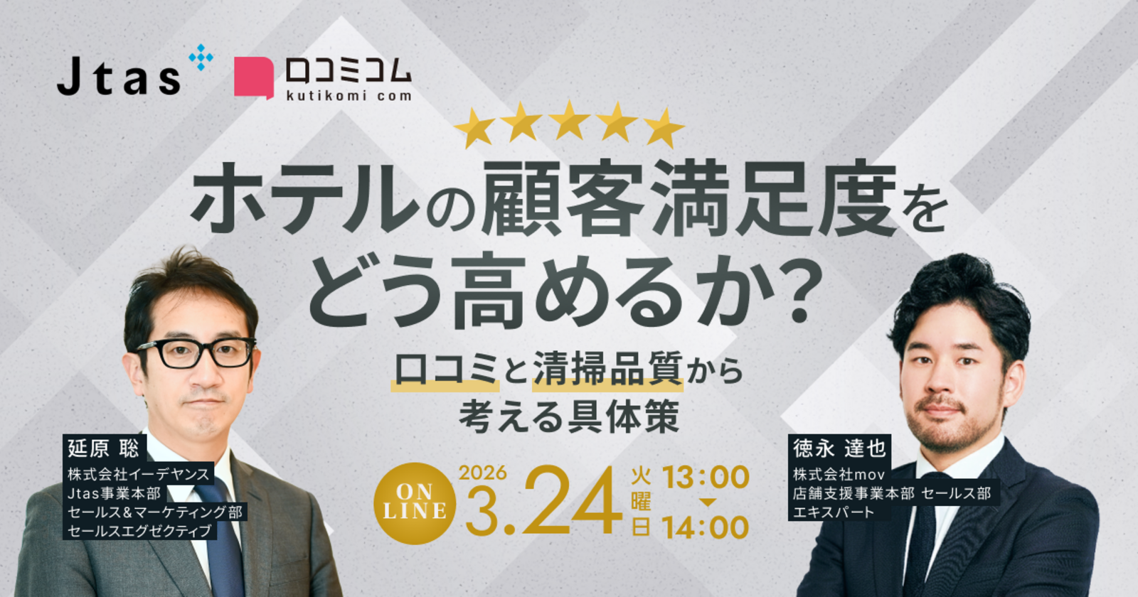 そこで本セミナーでは、宿泊客の満足度を可視化する「口コミ」と満足度を左右する「清掃品質」に焦点を当てて解説。