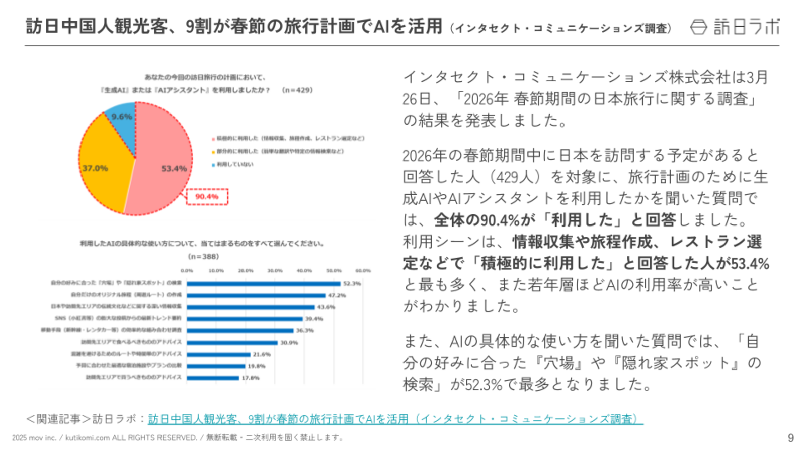 関連記事:訪日中国人観光客、9割が春節の旅行計画でAIを活用(インタセクト・コミュニケーションズ調査)