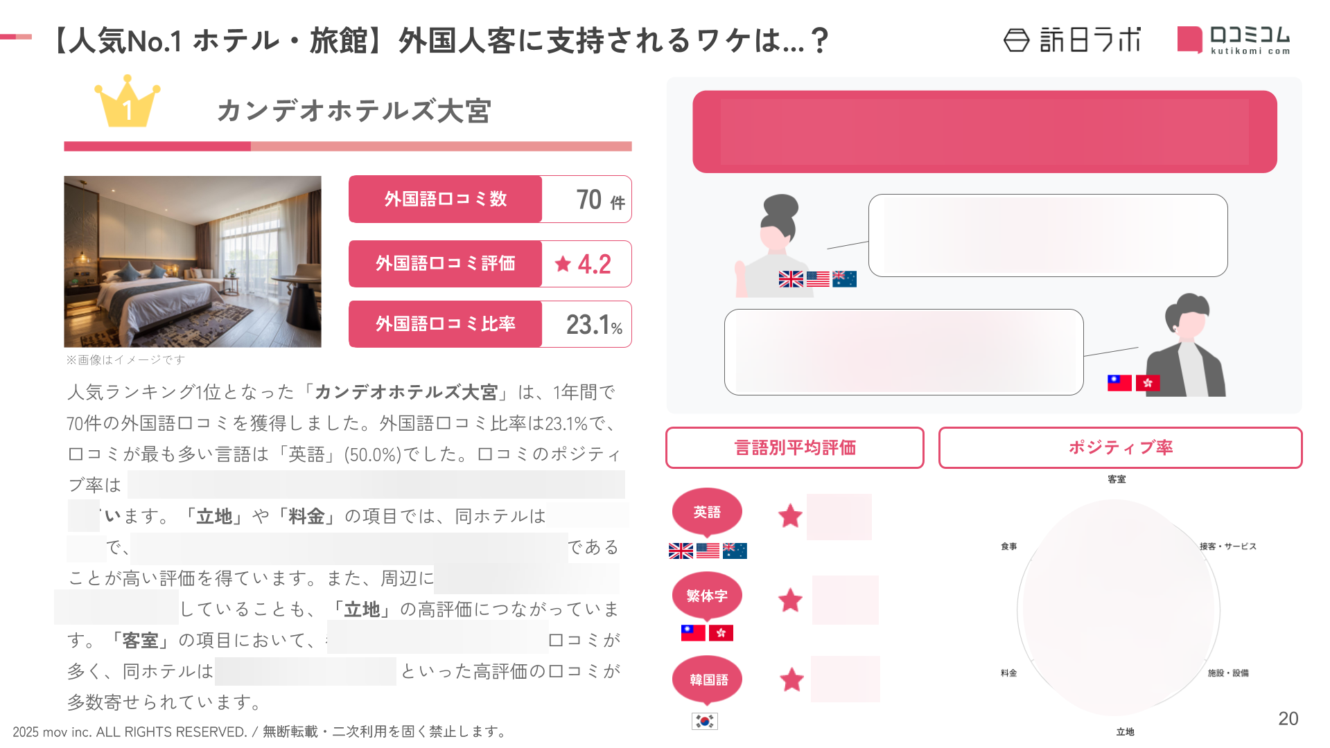 調査方法:「口コミサイトを “もっと” 売上に変える」口コミコム(インバウンドオプション)を利用して、調査リソース上のデータを独自に分析・解析