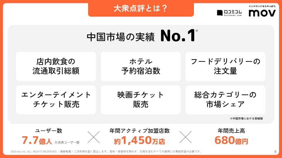 2025年1〜3月期における訪日中国人の月平均数は78.8万人。これに対し同期間の「大衆点評」日本エリアにおける月間アクティブユーザー(MAU)は平均49.4万人にものぼりました。