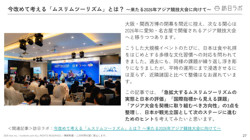 <関連記事>訪日ラボ:今改めて考える「ムスリムツーリズム」とは? 〜来たる2026年アジア競技大会に向けて〜