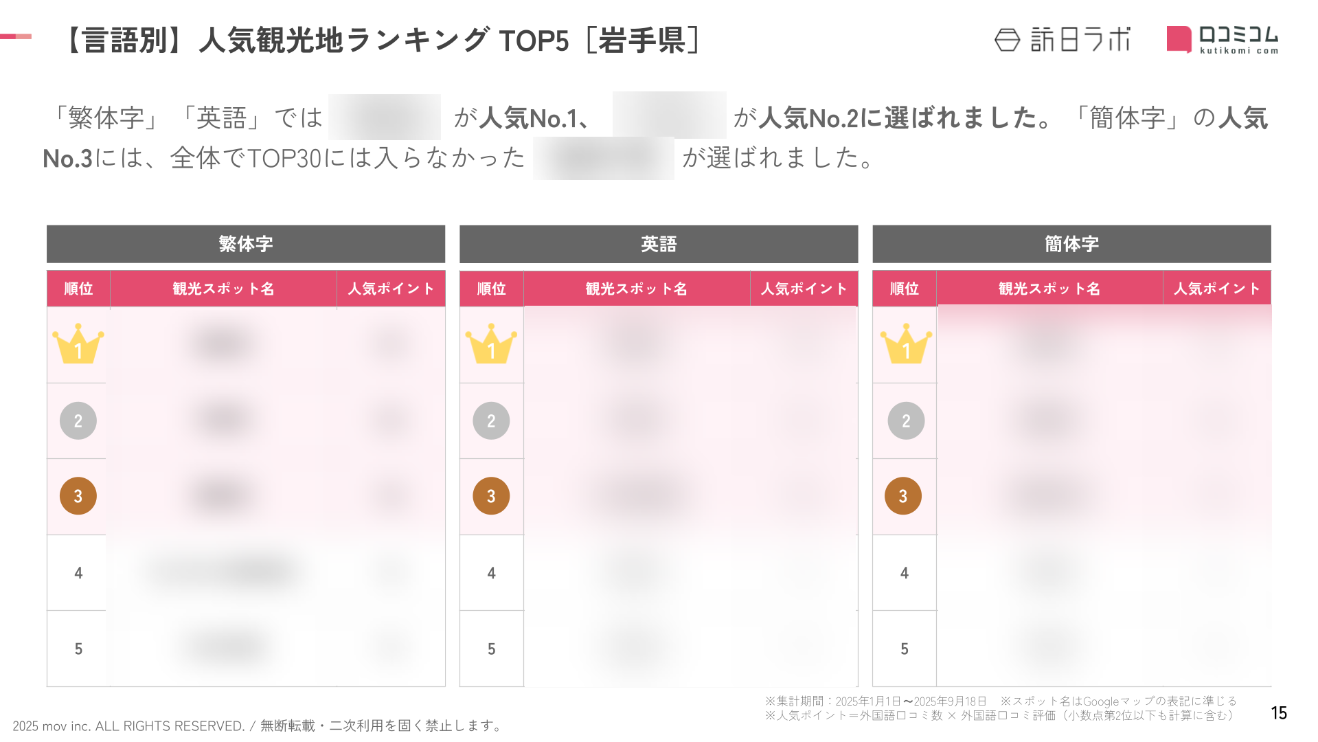 訪日ラボ・口コミコムが独自に調査した『インバウンド人気観光地ランキング』岩手編。